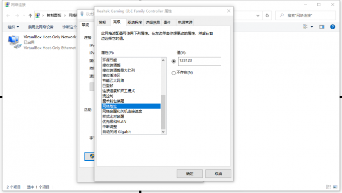 如果没有mac地址修改工具,也是可以在网卡高级选项中修改的。 如图,“网络地址”或者“物理地址”